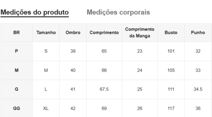 Disponível nos tamanhos: P, M, G e GG, garantindo o ajuste perfeito para cada tipo de corpo.