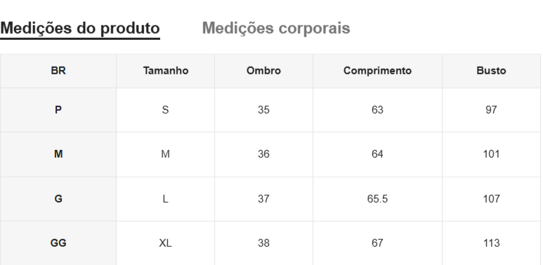 Disponível nos tamanhos: P, M, G e GG, garantindo o ajuste perfeito para cada tipo de corpo.
