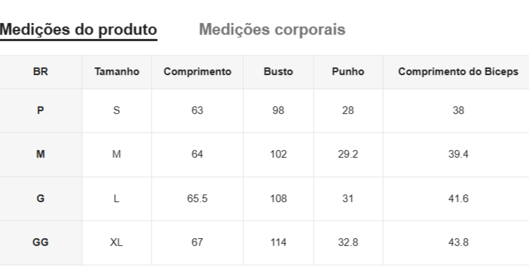 Disponível no tamanho: P, garantindo o ajuste perfeito para cada tipo de corpo.