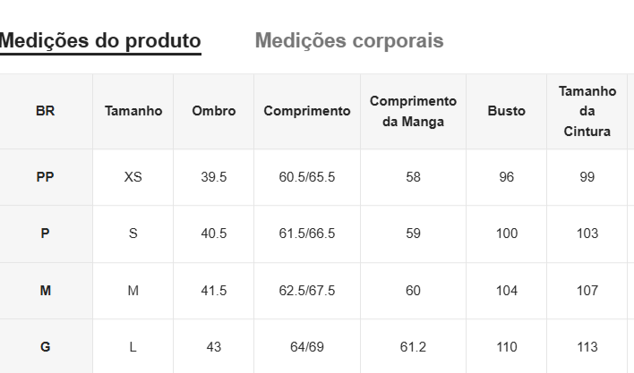 Disponível nos tamanhos: PP, P, M e G, garantindo o ajuste perfeito para cada tipo de corpo.
