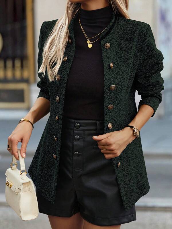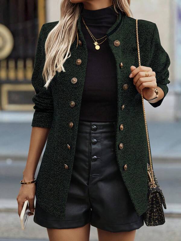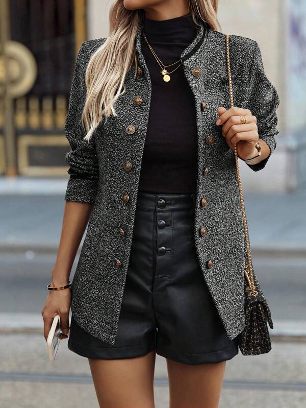 Design moderno, gola colarinho baixo, botões funcionais e de enfeite. A peça é perfeita para te deixar moderna e elegante em seu dia a dia. Acabamento impecável e detalhes que adicionam sofisticação ao seu visual.