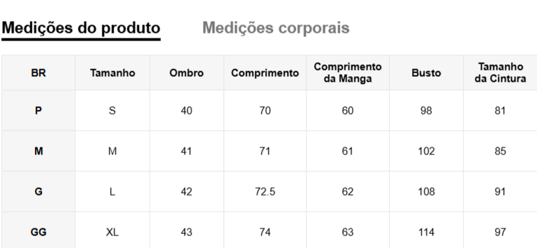 Disponível no tamanho P, M, G e GG, garantindo o ajuste perfeito para cada tipo de corpo.