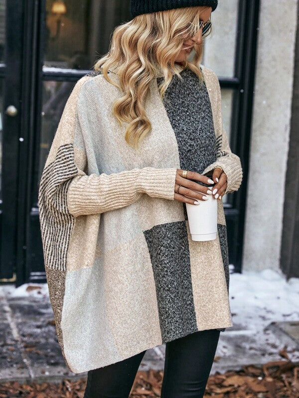 Design moderno, ponche com gola alta, mangas morcego e corte assimétrico. Perfeito para te deixar moderna e elegante em seu dia a dia. Acabamento impecável e detalhes que adicionam sofisticação ao seu visual.