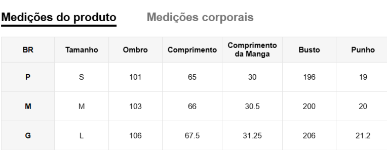 Disponível no tamanho P, M, e G, garantindo o ajuste perfeito para cada tipo de corpo.