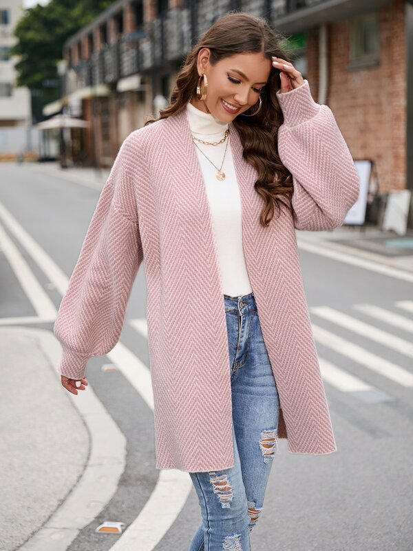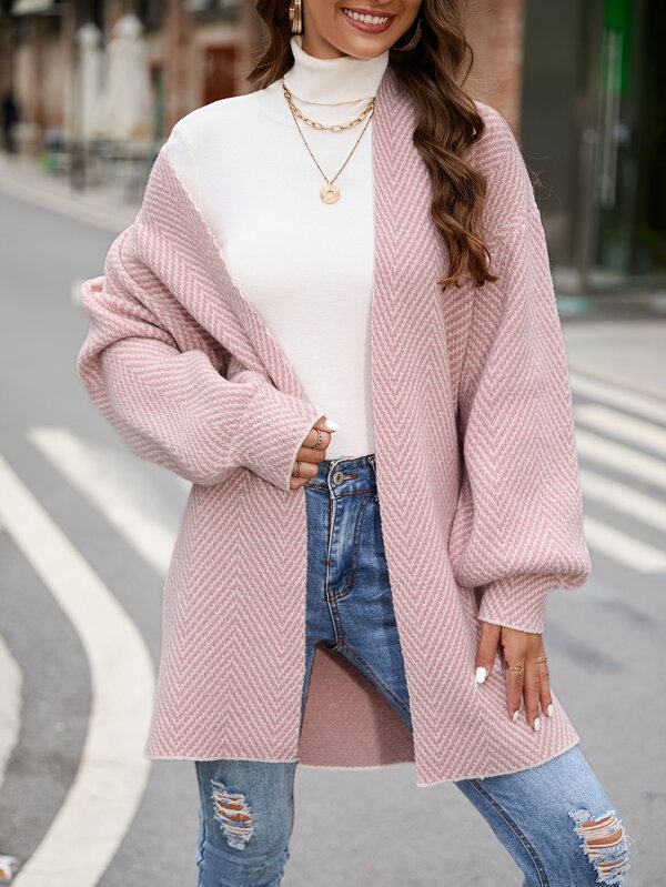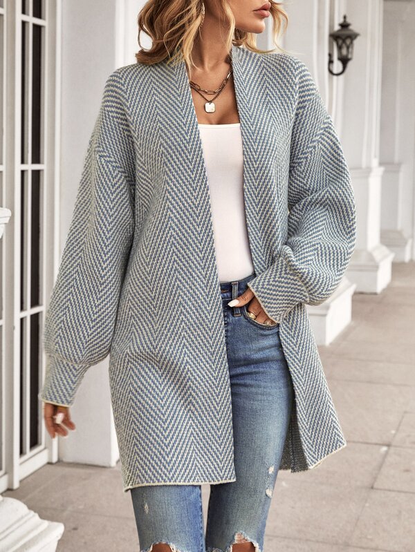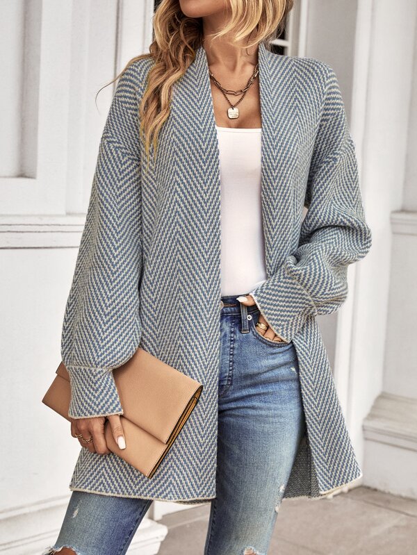 Design moderno, cardigã de mangas longas tipo bishop e a peça tem estampa chevron. Perfeito para te deixar moderna em seu dia a dia. Acabamento impecável e detalhes que adicionam sofisticação ao seu visual.