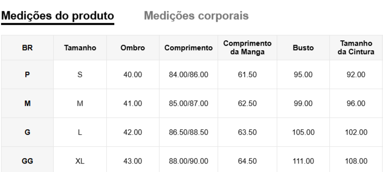 Disponível no tamanho P, M, G e GG, garantindo o ajuste perfeito para cada tipo de corpo.