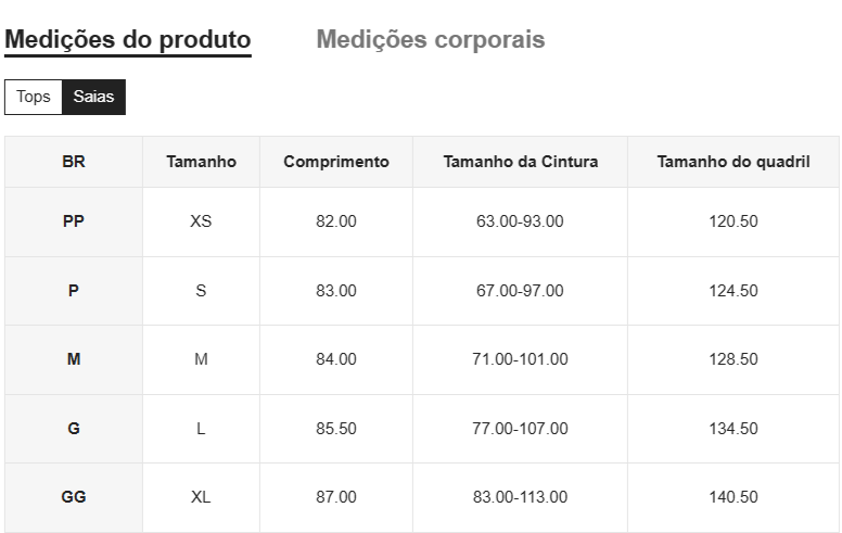 Disponível nos tamanhos PP, P, M, G e GG, garantindo o ajuste perfeito para cada tipo de corpo.