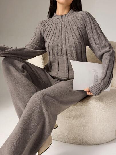 Design casual chique, calça flare com elástico na cintura, combinando perfeitamente com o casaco de colarinho elevado, gola redonda e mangas longas estilo raglan. A peça possui belíssimos detalhes que dão ao look um ar de elegância e charme. Acabamento impecável e detalhes que adicionam sofisticação ao seu visual.