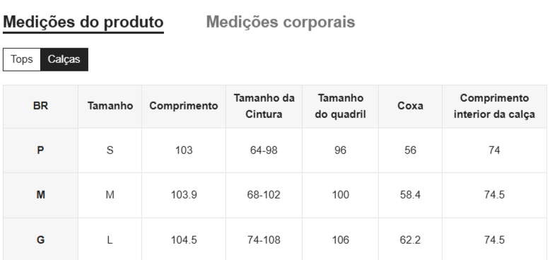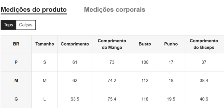 Disponível nos tamanhos P e G, garantindo o ajuste perfeito para cada tipo de corpo.