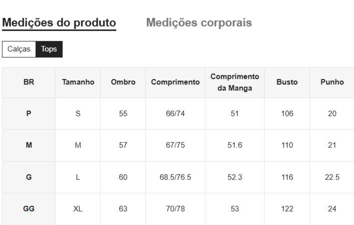 Disponível nos tamanhos P, M, G e GG, garantindo o ajuste perfeito para cada tipo de corpo.