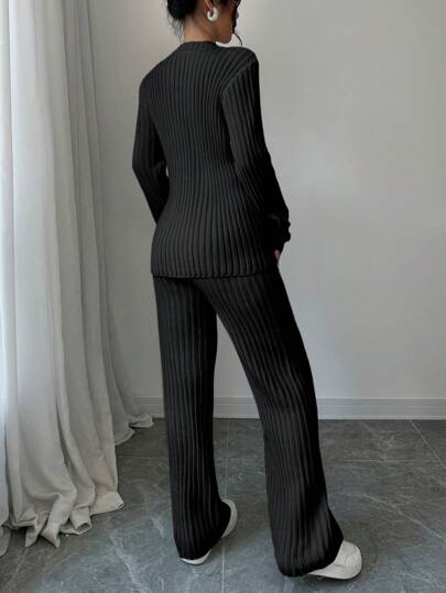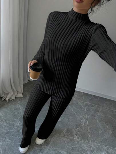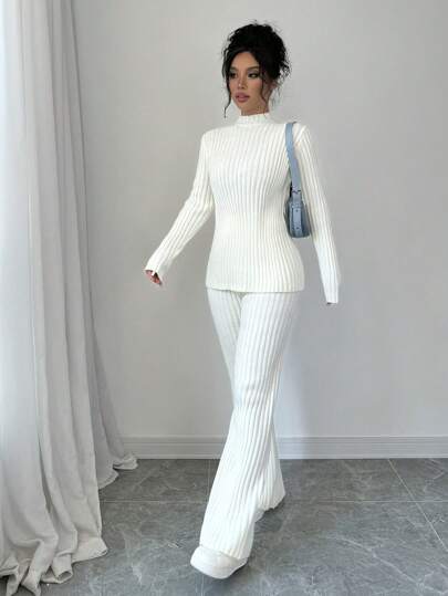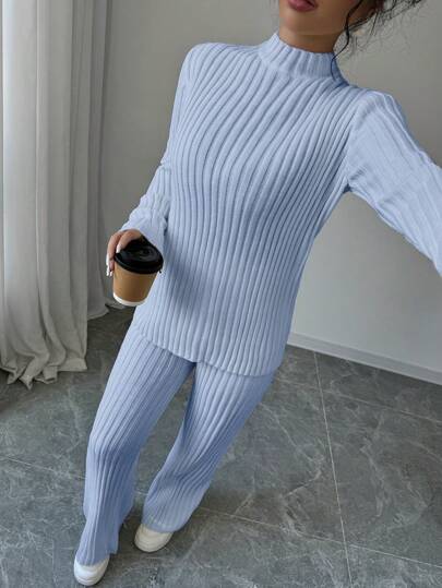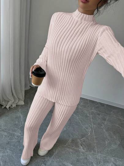 Design casual chique, calça reta com elástico na cintura, combinando perfeitamente com o casaco de gola alta e mangas longas. A peça é de lã toda malhada, dando um ar de sofisticação ao visual. Acabamento impecável e detalhes que adicionam sofisticação ao seu visual.