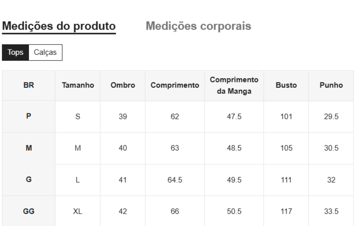 Disponível nos tamanhos P, M, G e GG, garantindo o ajuste perfeito para cada tipo de corpo.
