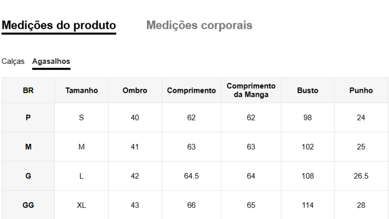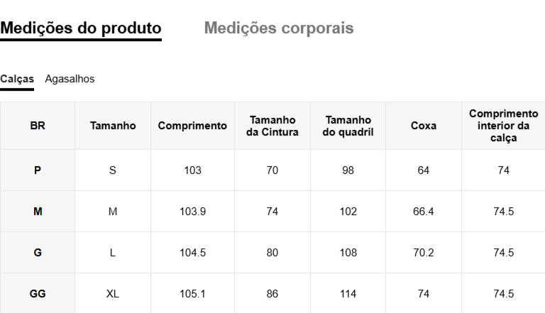 Disponível nos tamanhos P, M, G e GG, garantindo o ajuste perfeito para cada tipo de corpo.