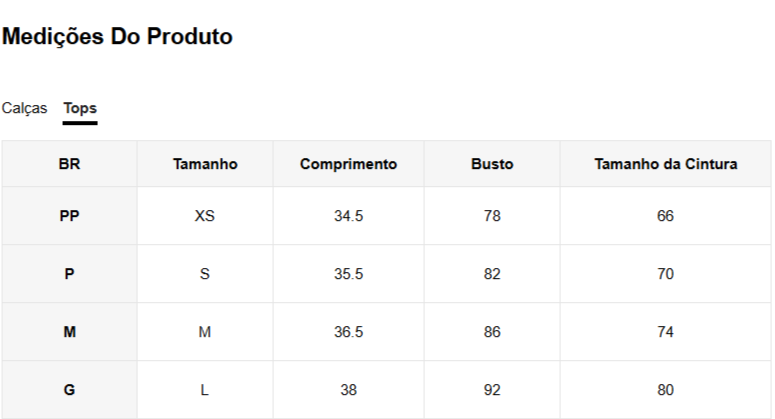 Disponível nos tamanhos PP, P, M e G, garantindo o ajuste perfeito para cada tipo de corpo.