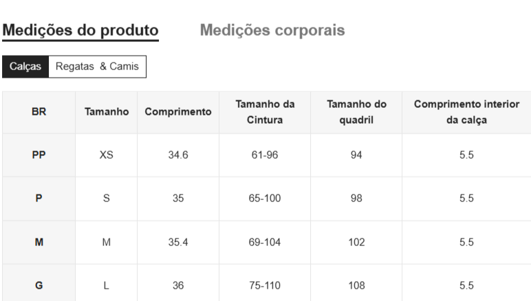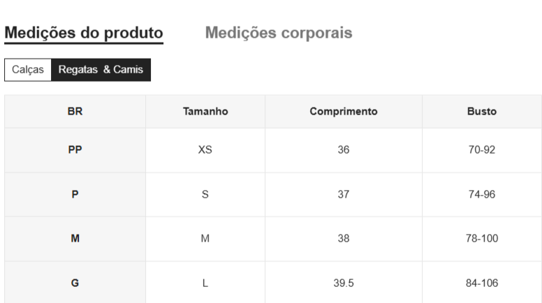 Disponível no tamanho PP, P, M e G, garantindo o ajuste perfeito para cada tipo de corpo.