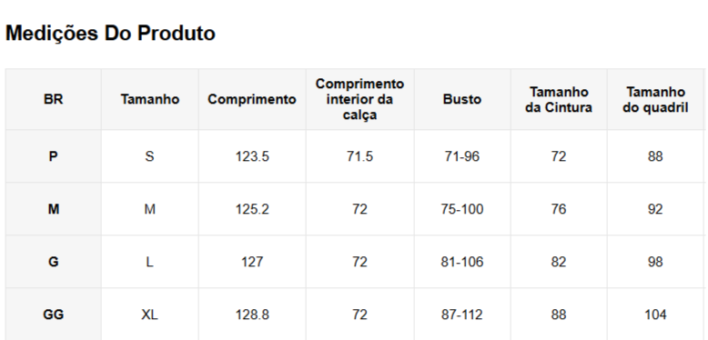 Disponível nos tamanhos P, M, G e GG, garantindo o ajuste perfeito para cada tipo de corpo.