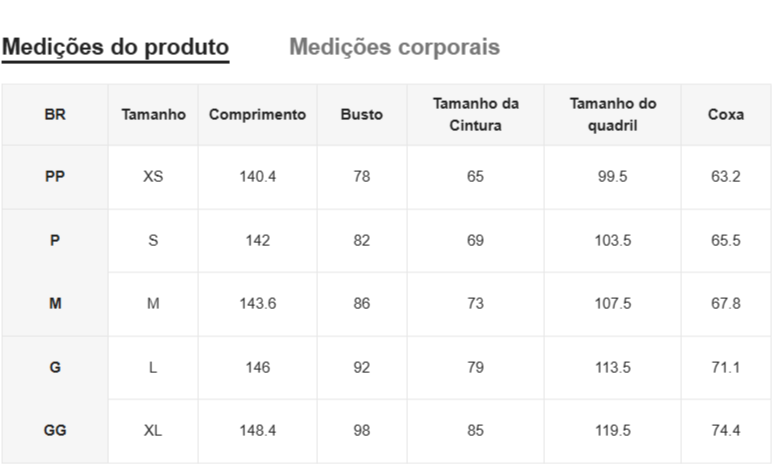Disponível nos tamanhos PP, P, M, G e GG, garantindo o ajuste perfeito para cada tipo de corpo.