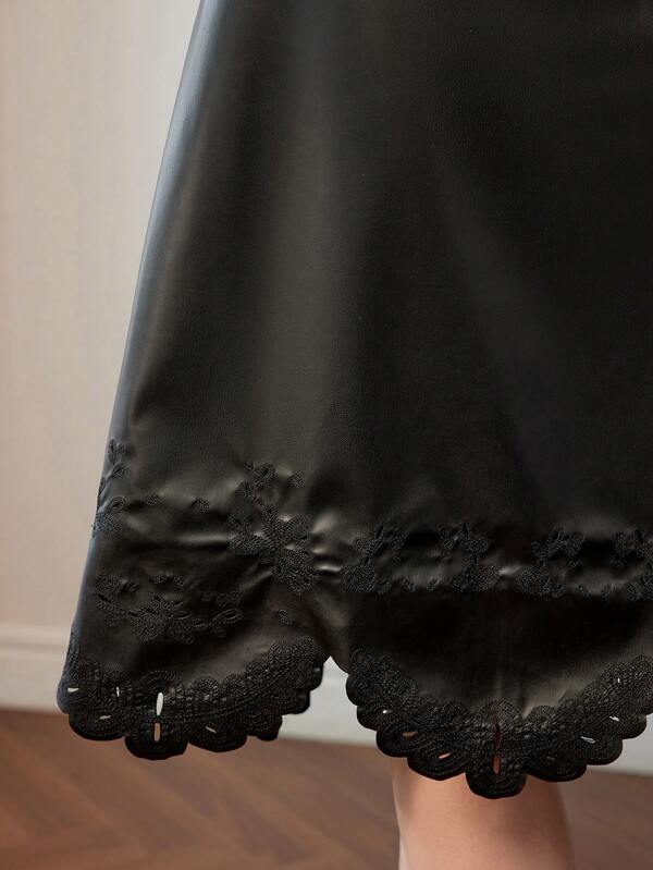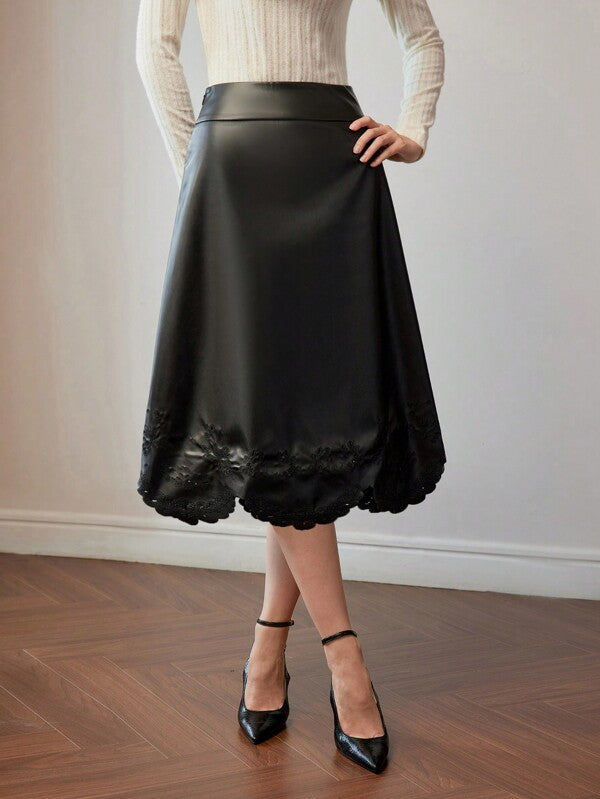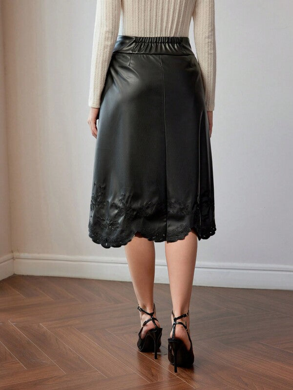 Design moderno, corte evasê com forro, elástico na cintura, barra assimétrica com belíssimos bordados, dando um toque de sofisticação ao look. Acabamento impecável e detalhes que adicionam sofisticação ao seu visual.