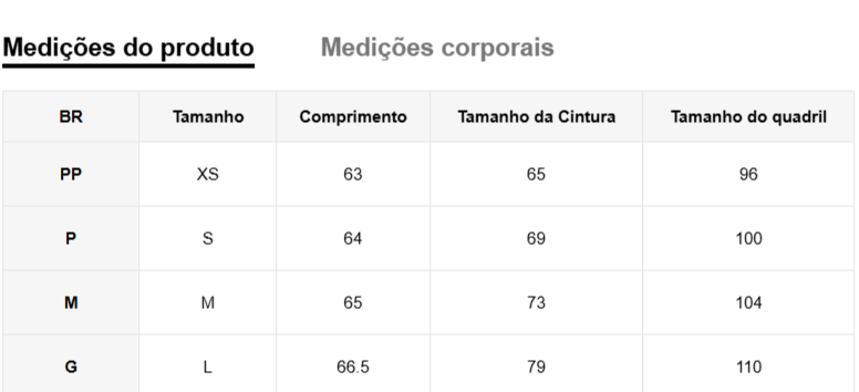 Disponível nos tamanhos PP, P, M e G, garantindo o ajuste perfeito para cada tipo de corpo.