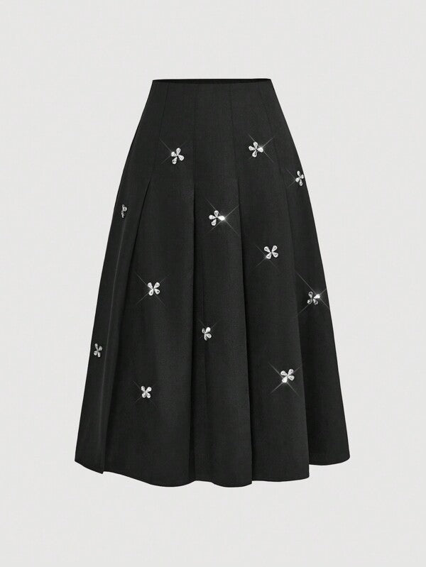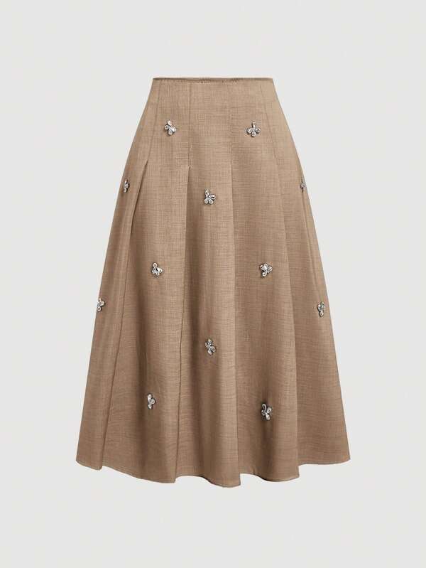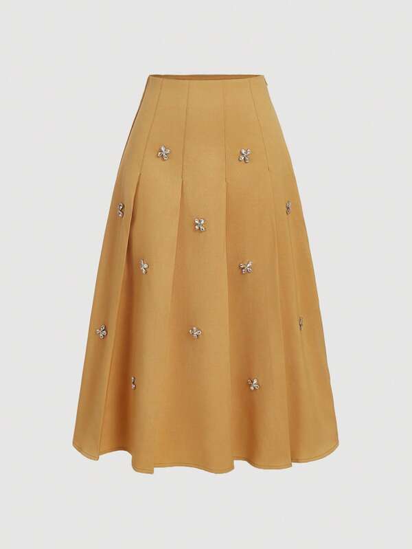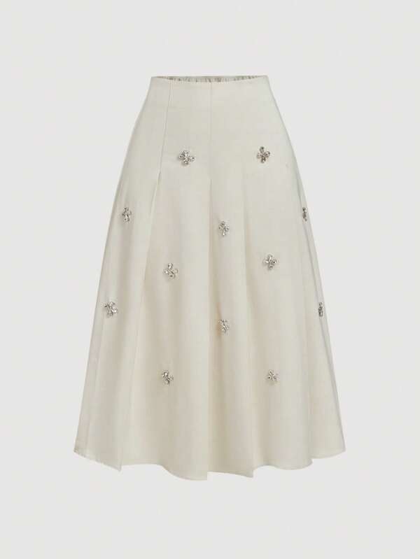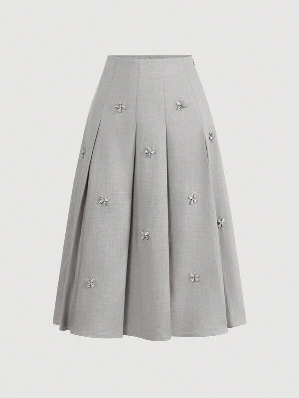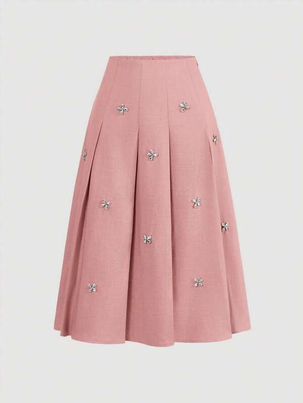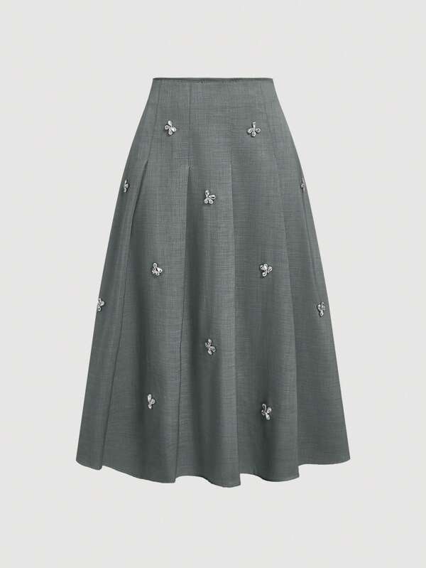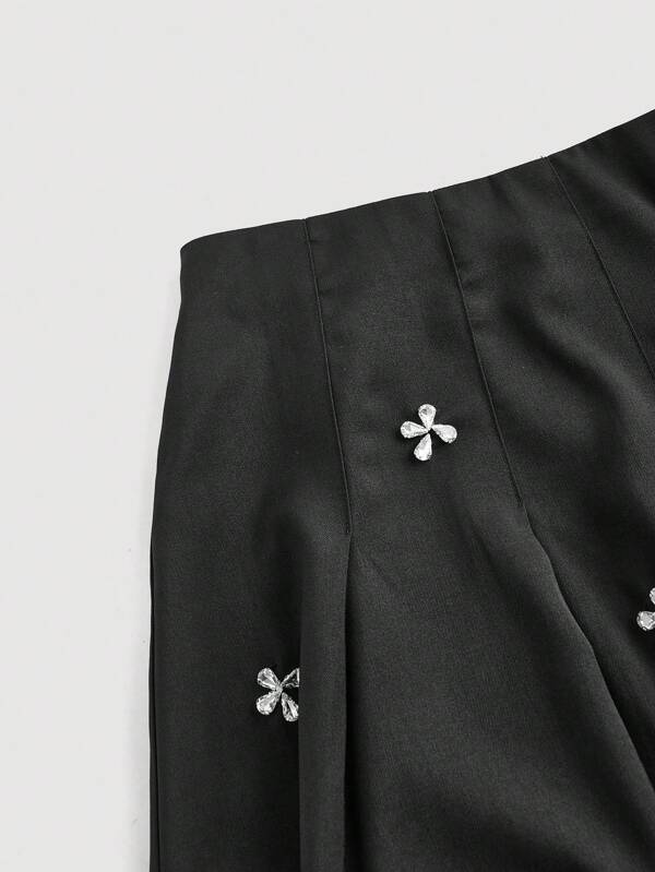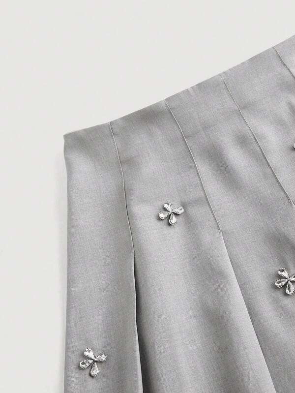 Design moderno, godê plissada, estilo acadêmico, cintura alta, fechamento com zíper e belíssimos enfeites bordados na frente, enriquecendo o visual. Acabamento impecável e detalhes que adicionam sofisticação ao seu visual.