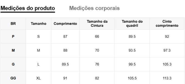 Disponível nos tamanhos P, M, G e GG, garantindo o ajuste perfeito para cada tipo de corpo.