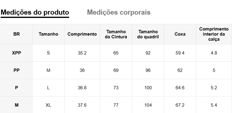 Disponível nos tamanhos XPP, PP, P e M, garantindo o ajuste perfeito para cada tipo de corpo.
