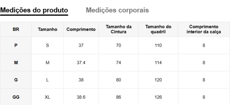 Disponível nos tamanhos P, M, G ou GG, garantindo o ajuste perfeito para cada tipo de corpo.