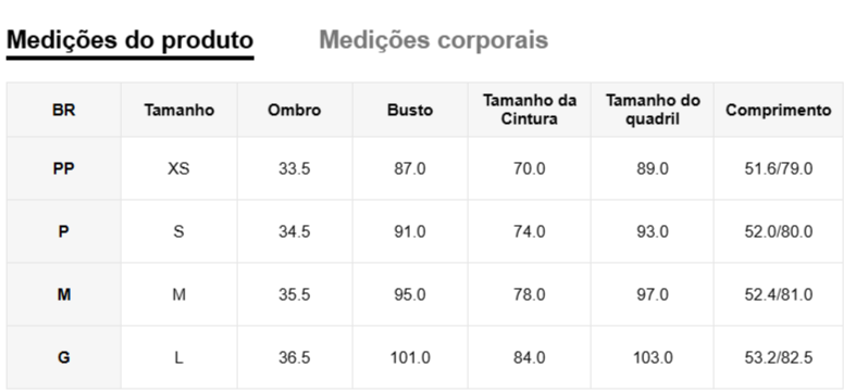 Disponível no tamanho PP, P, M e G, garantindo o ajuste perfeito para cada tipo de corpo.