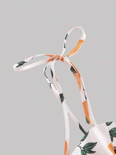 O Vestido Ada está disponível na cor: Branco com estampas frutais.
