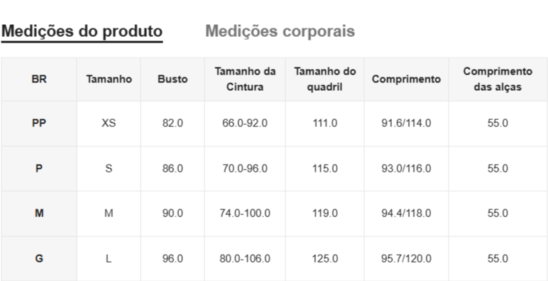 Disponível no tamanho PP, P, M e G, garantindo o ajuste perfeito para cada tipo de corpo.