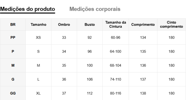 Disponível nos tamanhos P, M, G e GG, garantindo o ajuste perfeito para cada tipo de corpo.