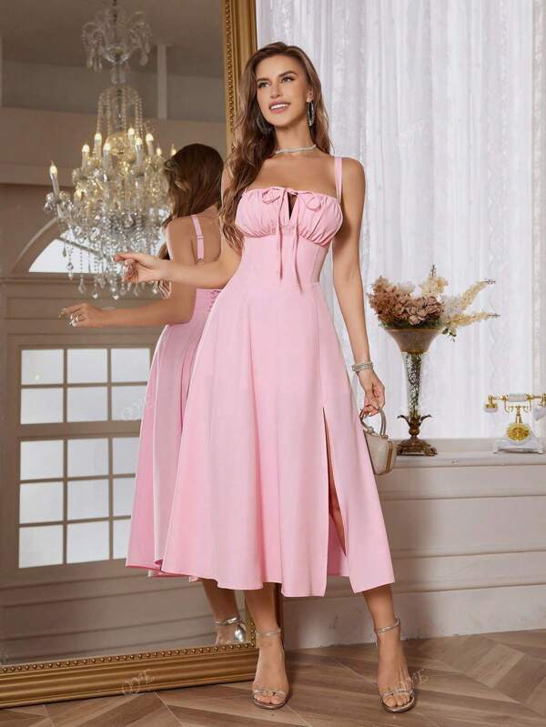 Design romântico e sensual, possui alças reguláveis, decote de coração com laço regulável, trançado nas costas e com uma fenda, para dar um ar de sensualidade e sofisticação á peça. Acabamento impecável e detalhes que adicionam sofisticação ao seu visual.