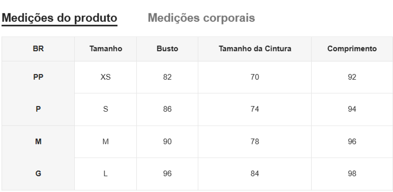 Disponível no tamanho PP, P, M e G, garantindo o ajuste perfeito para cada tipo de corpo.