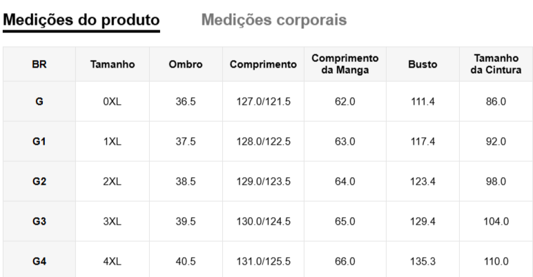 Disponível nos tamanhos G0, G1, G2, G3 e G4, garantindo o ajuste perfeito para cada tipo de corpo.