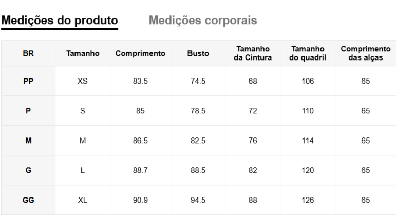 Disponível nos tamanhos PP, P, M, G e GG, garantindo o ajuste perfeito para cada tipo de corpo.