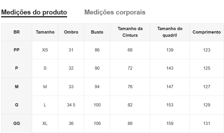 Disponível no tamanho PP, P, M, G e GG, garantindo o ajuste perfeito para cada tipo de corpo.
