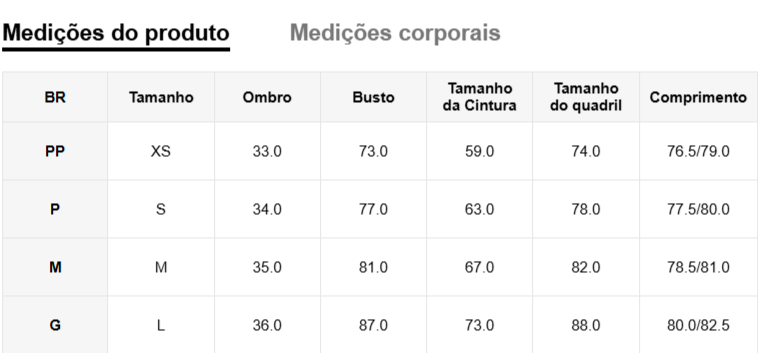 Disponível no tamanho PP, P, M e G, garantindo o ajuste perfeito para cada tipo de corpo.