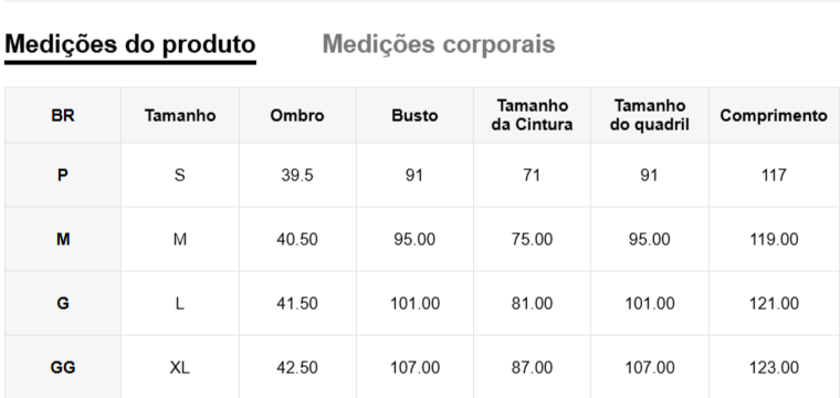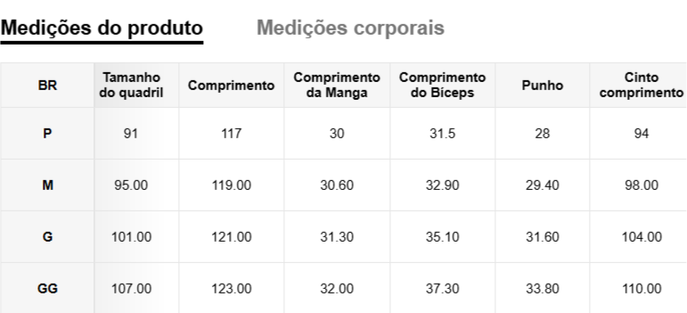 Disponível nos tamanhos P, M, G e GG, garantindo o ajuste perfeito para cada tipo de corpo.