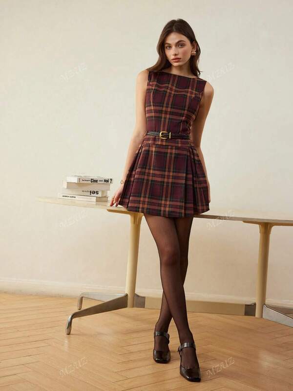 Design moderno, curto, sem mangas, gola redonda, bem acinturada com a saia plissada, valorizando a silhueta. Ideal para quem deseja transmitir feminilidade em qualquer ocasião. Acabamento impecável e detalhes que adicionam sofisticação ao seu visual.