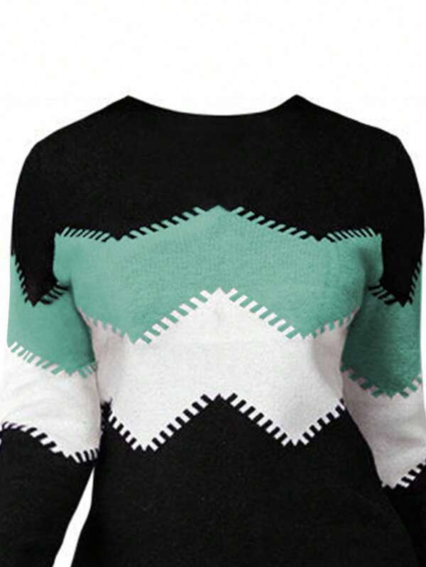 Design moderno, curto, com mangas longas e gola redonda. Justo, tipo bodycon e com recorte colorblock. Acabamento impecável e detalhes que adicionam sofisticação ao seu visual.