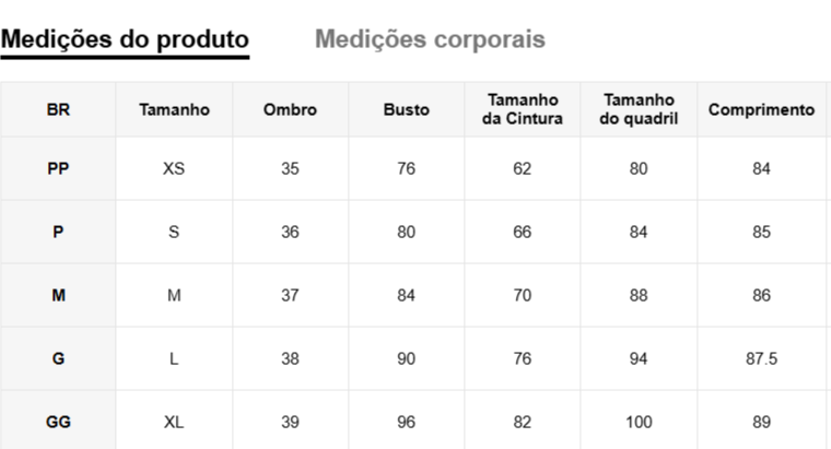 Disponível nos tamanhos PP, P, M, G e GG, garantindo o ajuste perfeito para cada tipo de corpo.