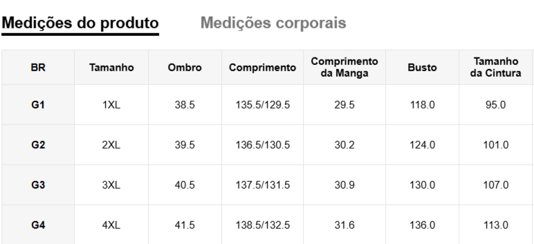 Disponível nos tamanhos G1, G2, G3 e G4, garantindo o ajuste perfeito para cada tipo de corpo.