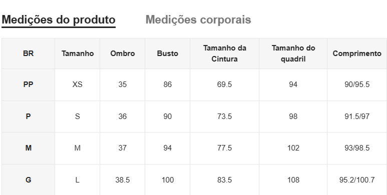 Disponível no tamanho PP, P, M e G, garantindo o ajuste perfeito para cada tipo de corpo.
