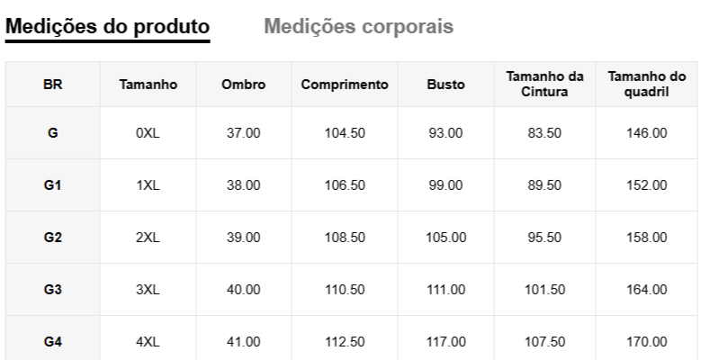 Disponível nos tamanhos G0, G1, G2, G3 e G4, garantindo o ajuste perfeito para cada tipo de corpo.