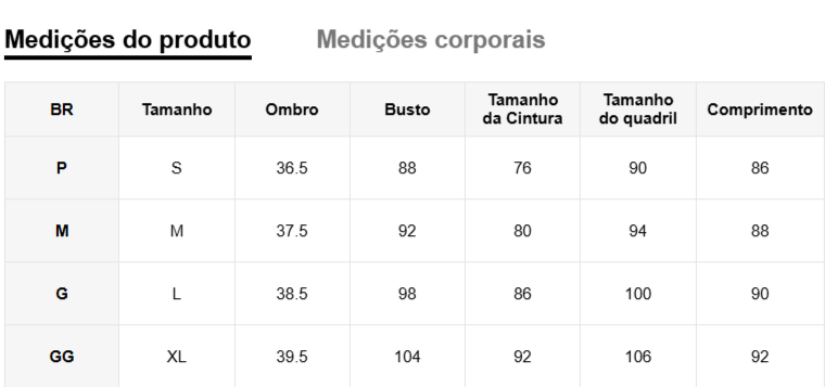 Disponível nos tamanhos P, M, G e GG, garantindo o ajuste perfeito para cada tipo de corpo.