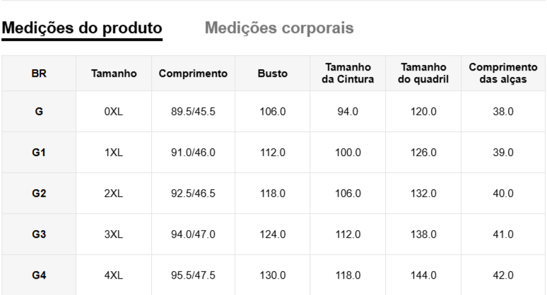 Disponível no tamanho G0, G1, G2, G3 e G4, garantindo o ajuste perfeito para cada tipo de corpo.