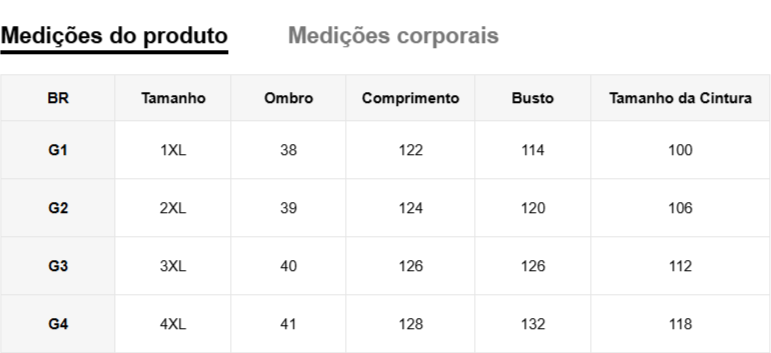 Disponível nos tamanhos G1, G2, G3 e G4, garantindo o ajuste perfeito para cada tipo de corpo.
