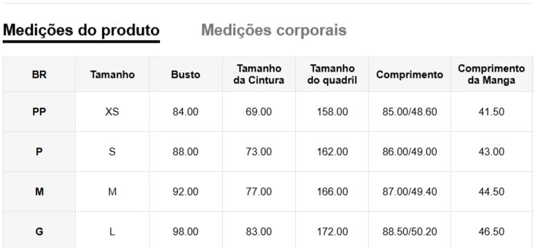 Disponível no tamanho PP, P, M e G, garantindo o ajuste perfeito para cada tipo de corpo.