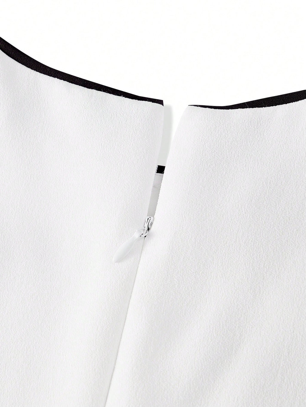 Design elegante, sem mangas com gola redonda, cintura contrastada e fechamento com zíper. Ideal para quem procura se destacar de maneira sútil e elegante.