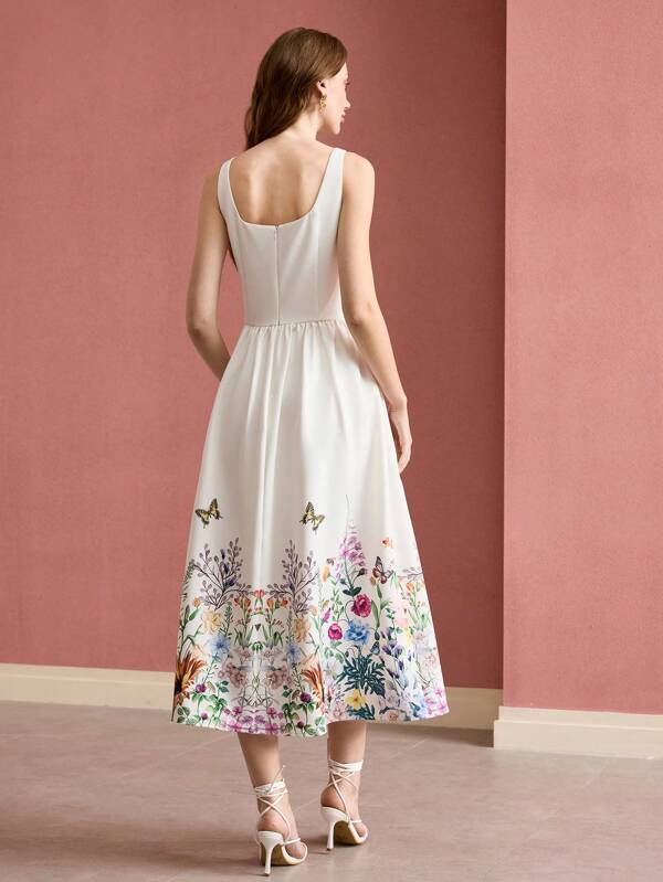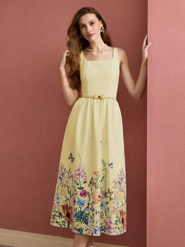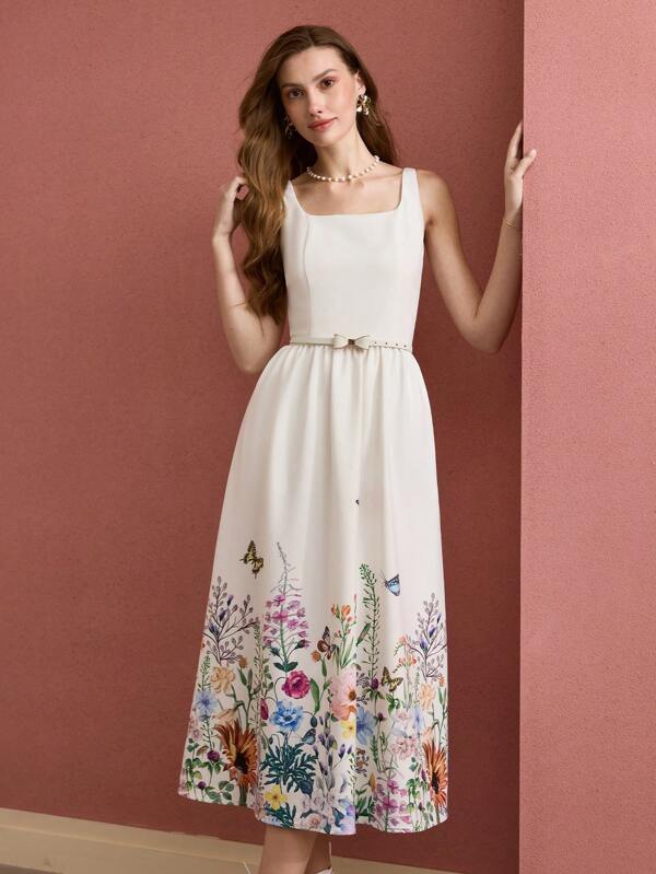 Design romântico e delicado com forro duplo, tipo evasê, sem mangas com decote quadrado bem acinturado e fechamento com zíper. Possui cinto para valorizar a silhueta, um detalhe que enriquece o look. Um modelo maravilhoso, que deixará você ainda mais linda! Ideal para quem deseja se sentir elegante e confortável em seu dia a dia. Acabamento impecável e detalhes que adicionam sofisticação ao seu visual.